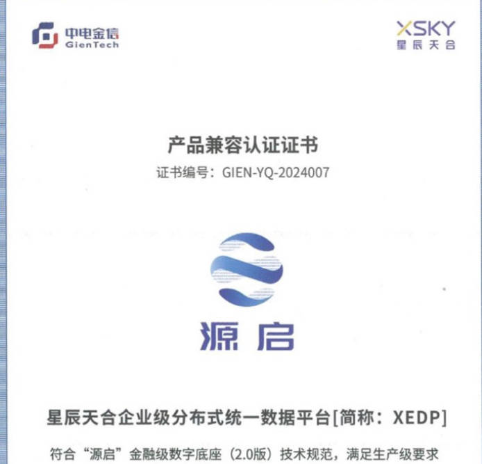 服務于金融新核心系統(tǒng) XSKY星辰天合與中電金信完成產(chǎn)品兼容認證